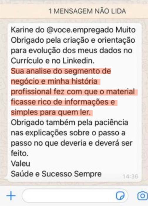 “Me auxiliou na elaboração do meu currículo, atualizações do LinkedIn e dicas para as entrevistas.”