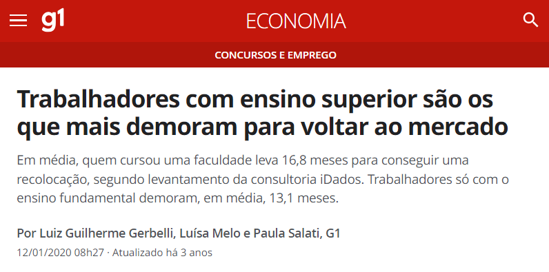 Segundo pesquisas, o tempo médio de recolocação no mercado de trabalho brasileiro é de um ano e meio.
